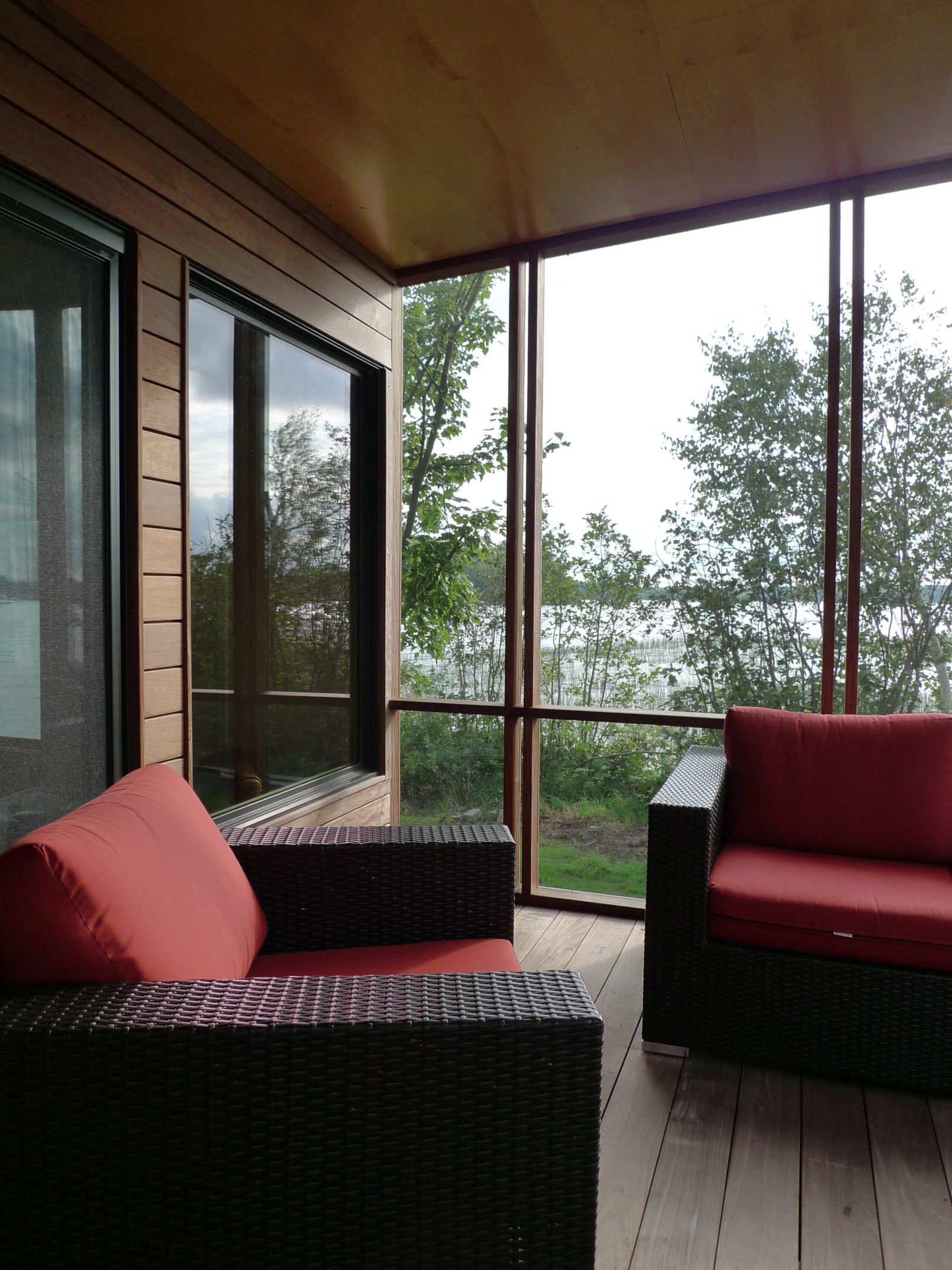 Situated around an old stone fireplace, these single storey mini home modules form a courtyard opening into the landscape.